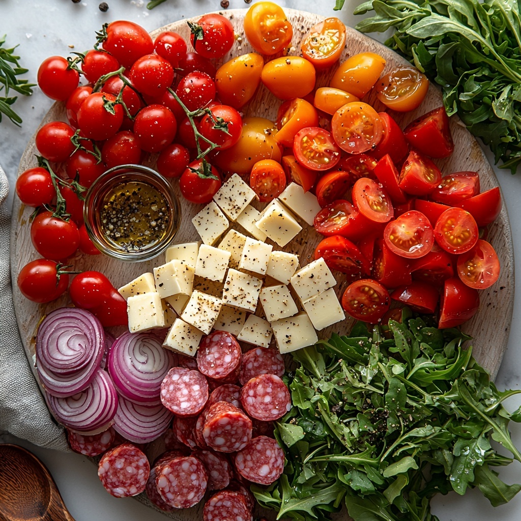 This Antipasto Salad with Red Wine Vinaigrette is a vibrant and flavorful Italian-inspired dish perfect for a light lunch or a refreshing starter. Combining tangy Kalamata olives, savory salami and pepperoni, crisp Romaine lettuce, and a homemade red wine vinaigrette, this salad delivers a perfect balance of Mediterranean flavors in every bite.