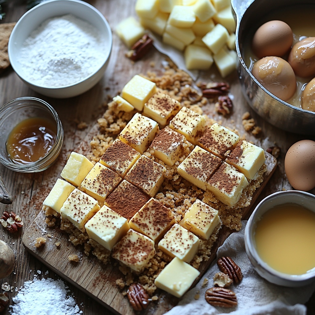 - Cool and Serve: Let the bars cool completely in the pan to room temperature. Once cooled, drizzle the homemade caramel sauce evenly over the top. Slice into approximately 12 bars and serve.