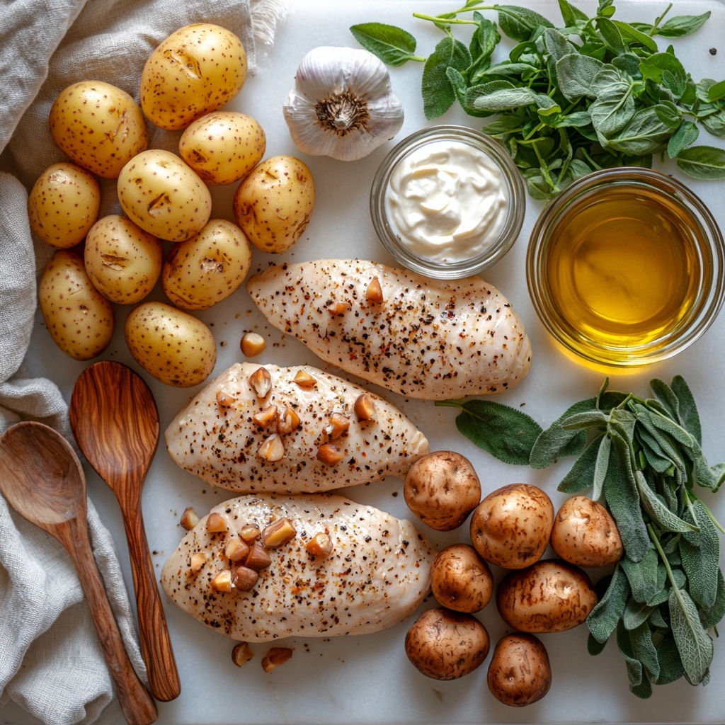 - Baby potatoes: Small, tender, and perfect for roasting with sage to complement the chicken.