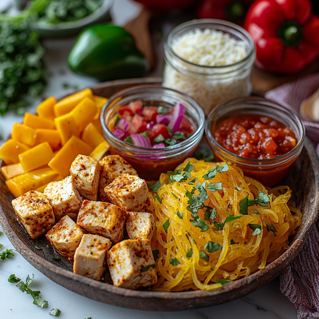 Gathering these simple yet essential ingredients is the first step toward creating a colorful and delicious dish. Each component plays its part in building bold flavors, appealing textures, and that fantastic balance between zesty and savory that makes the Chicken Fajita Spaghetti Squash Bowls Recipe so irresistible.