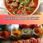 A rich and flavorful Chicken Madras Curry made with a blend of aromatic spices, diced tomatoes, and creamy coconut milk, simmered to perfection for a warm and satisfying meal. This hearty curry combines tender chicken breasts with a spicy and slightly sweet sauce, perfect served with rice or naan.