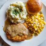 Country Fried Chicken with Gravy shines alongside classic Southern sides such as buttery mashed potatoes (the gravy’s perfect match), creamy coleslaw, or green beans with bacon. Cornbread or biscuits are also fantastic to soak up every luscious drop of gravy.