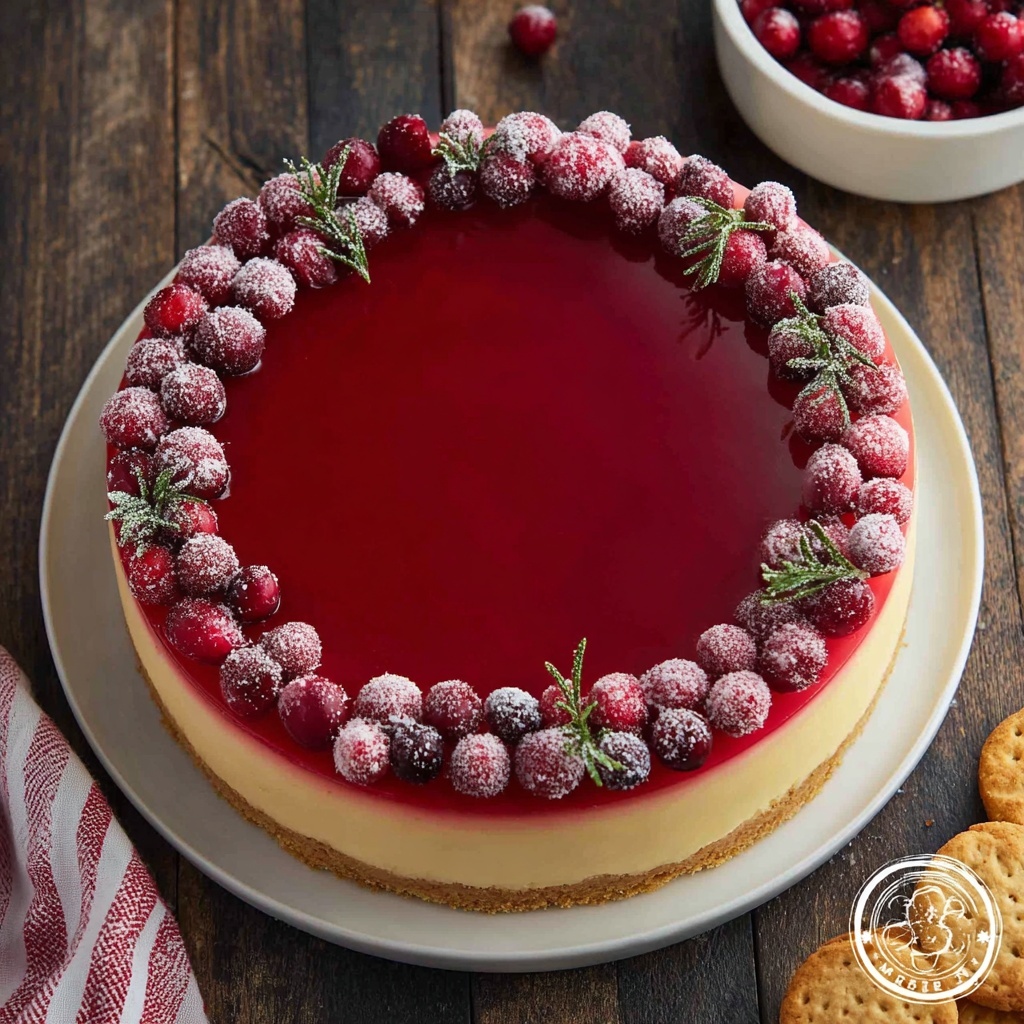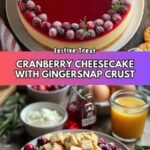 This rich and creamy Cranberry Cheesecake features a spiced gingersnap crust paired with a smooth cream cheese filling, topped with a tangy homemade cranberry-orange sauce. Perfect for holiday celebrations or any special occasion, this baked dessert combines seasonal cranberries with vibrant citrus notes and a hint of rosemary for an elegant finish.