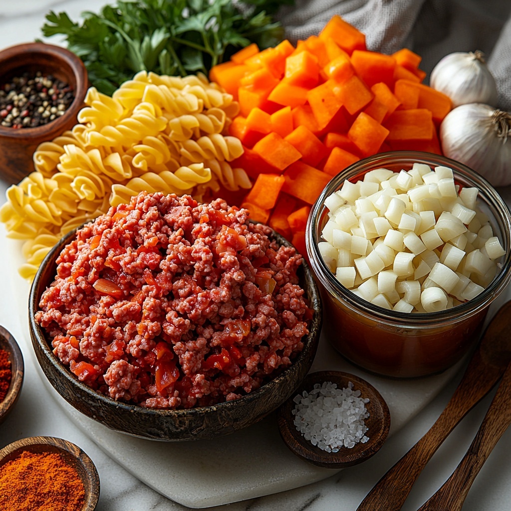 Getting this Easy Hamburger Noodle Soup Recipe just right means choosing simple but essential ingredients that create a symphony of texture, color, and flavor. Each component plays a role, whether it’s the savory ground beef for richness, the fragrant garlic and onion for depth, or the bright vegetables that add freshness and crunch.