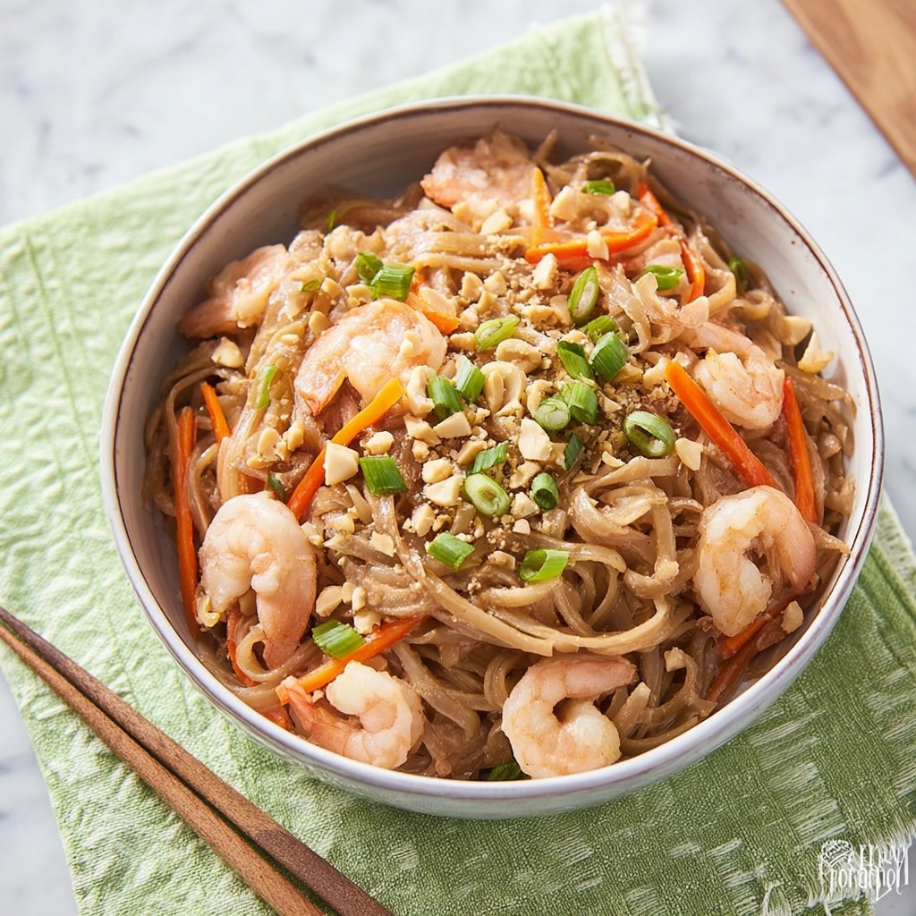This Easy Shrimp Pad Thai recipe delivers a quick and authentic Thai-inspired meal perfect for busy weeknights. Featuring tender shrimp, chewy rice noodles, a tangy-sweet sauce, and crunchy peanuts, it combines fresh ingredients and simple cooking steps to bring the vibrant flavors of traditional Pad Thai right to your kitchen in just 25 minutes.