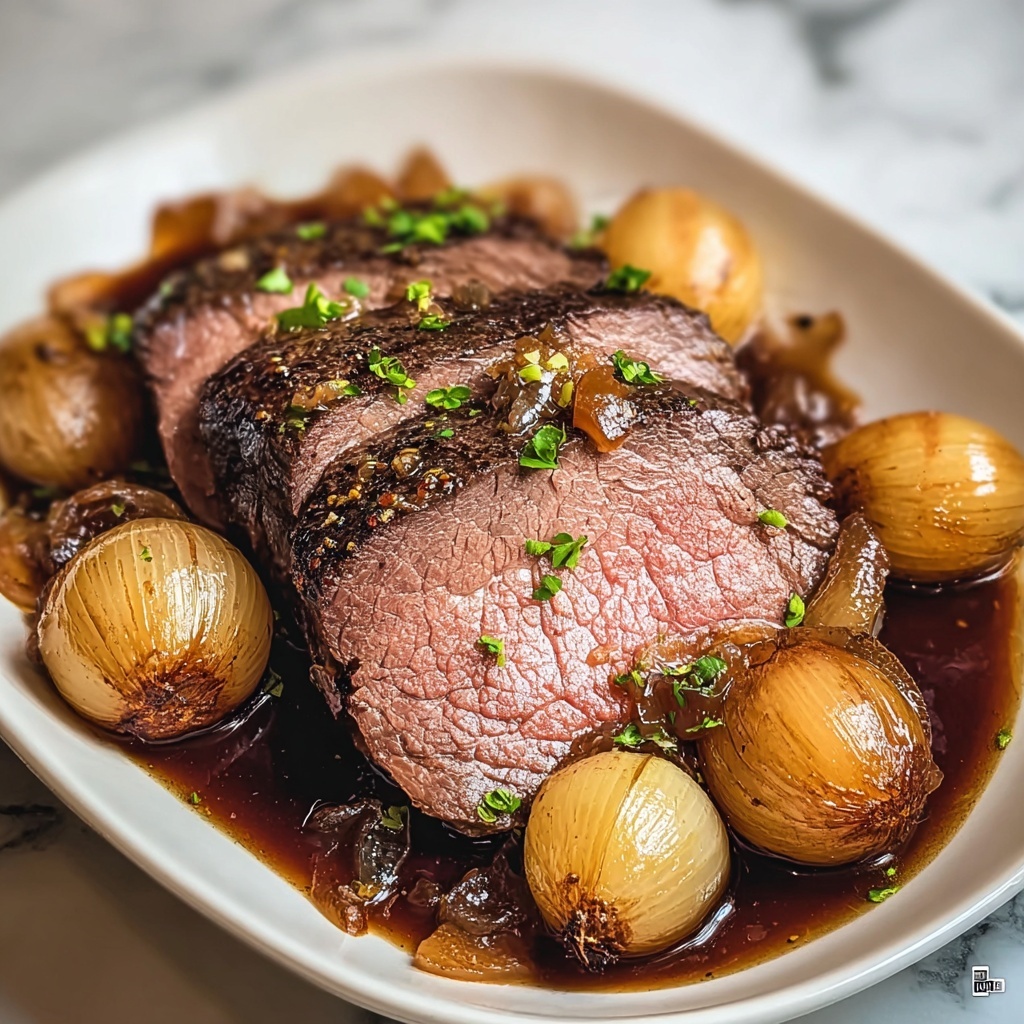 - Layer Ingredients in Slow Cooker: Place the sliced onions and minced garlic evenly at the bottom of the slow cooker to create a flavorful bed for the meat.