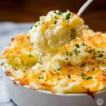 Funeral Potatoes pair beautifully with protein-rich mains such as roasted chicken, glazed ham, or grilled pork chops. A crisp green salad or steamed green beans work well on the side to balance the richness with their fresh, light textures.