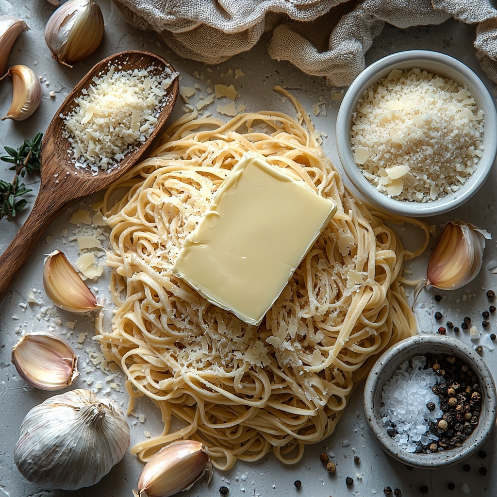 Getting this Garlic Buttered Noodles Recipe just right starts with a handful of humble ingredients. Each one plays a crucial role in creating that silky sauce and perfectly seasoned noodles that feel like a warm hug on a plate.