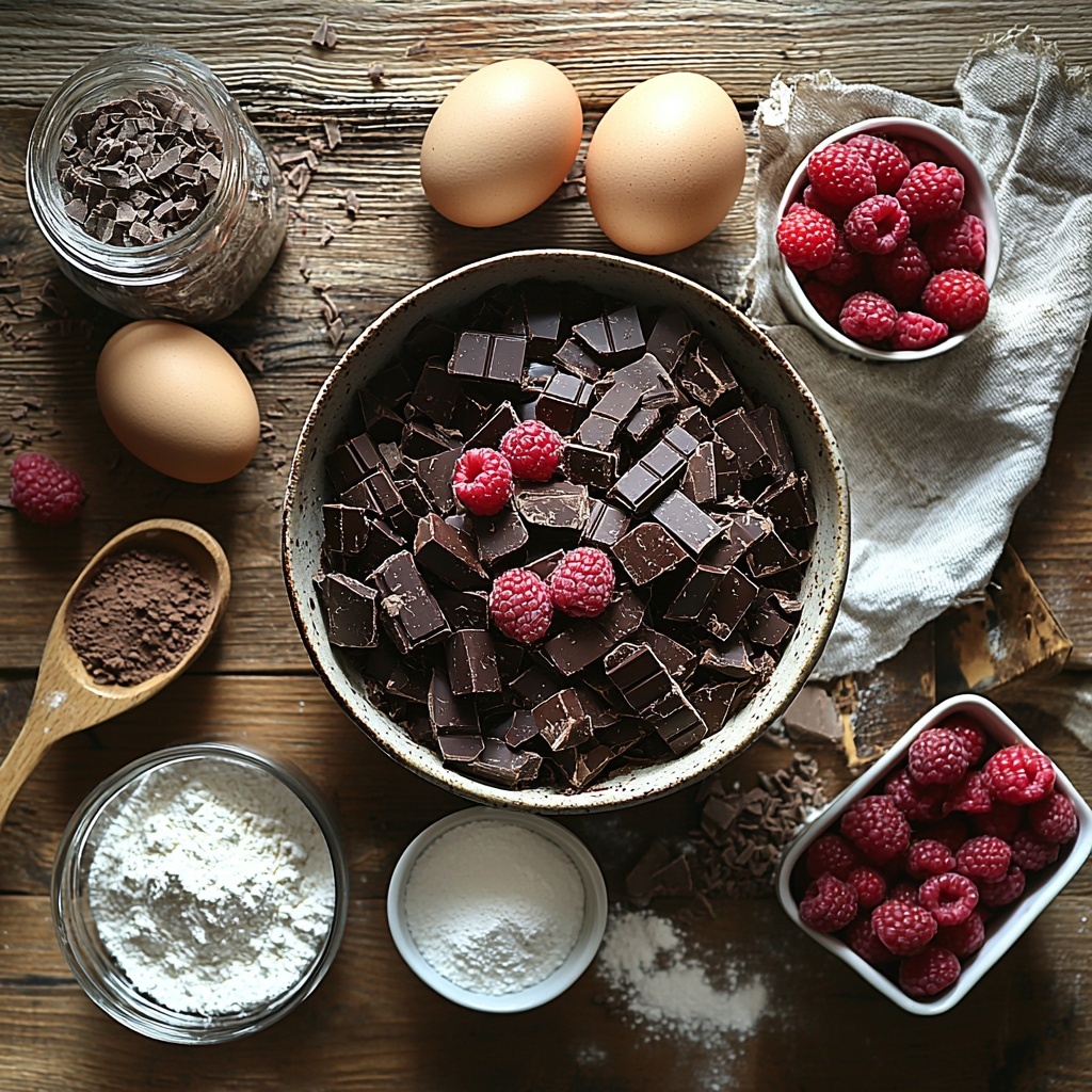 Getting the perfect balance of fudgy texture and luscious flavor is all about using simple yet high-quality ingredients. Each item here plays a vital role in making this cake tender, rich, and beautifully flavored, while the fresh raspberries bring that irresistible burst of vibrant color and tangy brightness to the frosting.